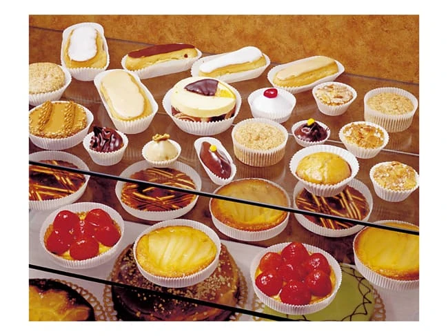 Caissettes rondes plissées en papier blanc ingraissable, 50 gr/m2.