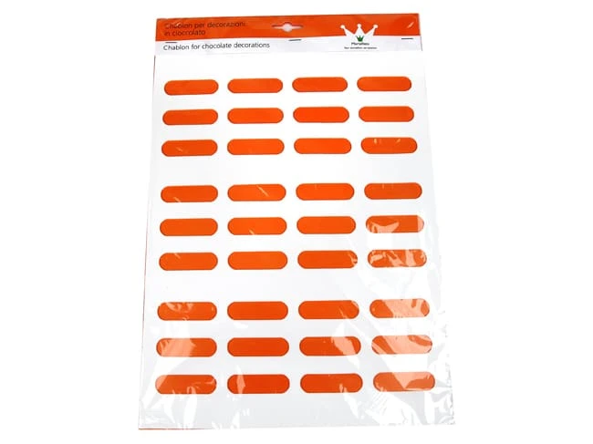 Chablon en silicone forme oblong permettant de réaliser un décor en biscuit, chocolat, sucre, sur un éclair.