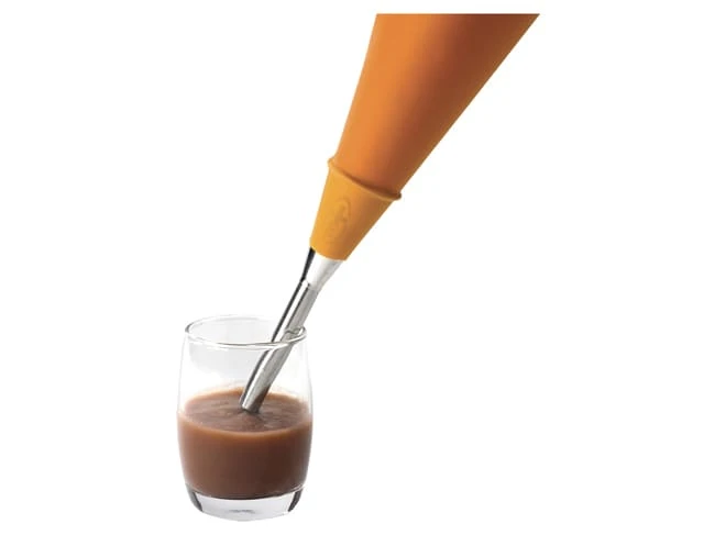 Montée dans une poche, cette douille à embout long facilite le remplissage pratique des verrines sans en salir les parois.