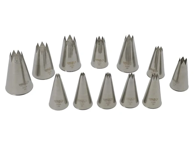 Boîte de 12 douilles cannelées en acier inoxydable monobloc, sans bord roulé.