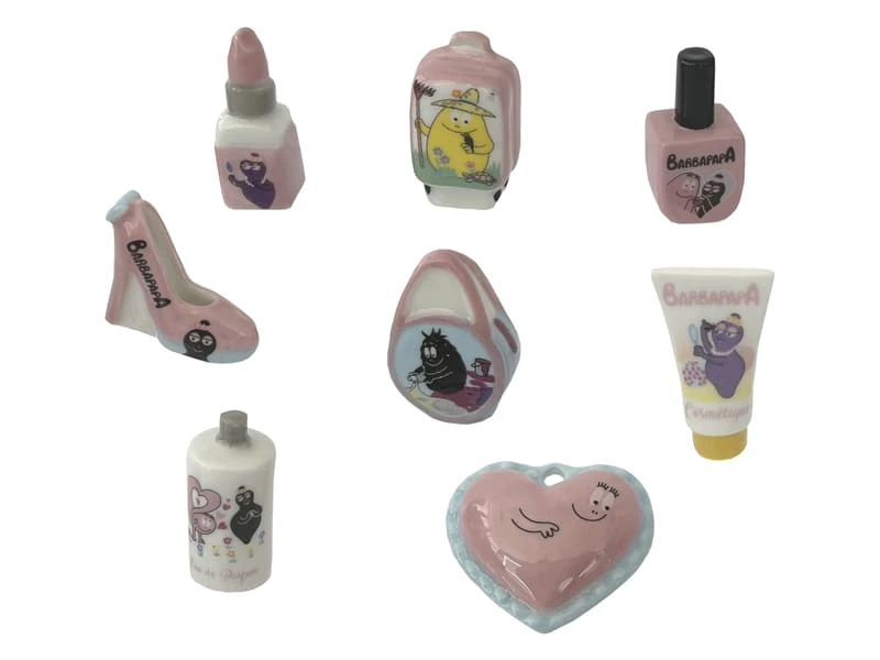 Boite de 100 fèves assorties en céramique sur le thème “Barpapa Fashion”. Finition brillante.
