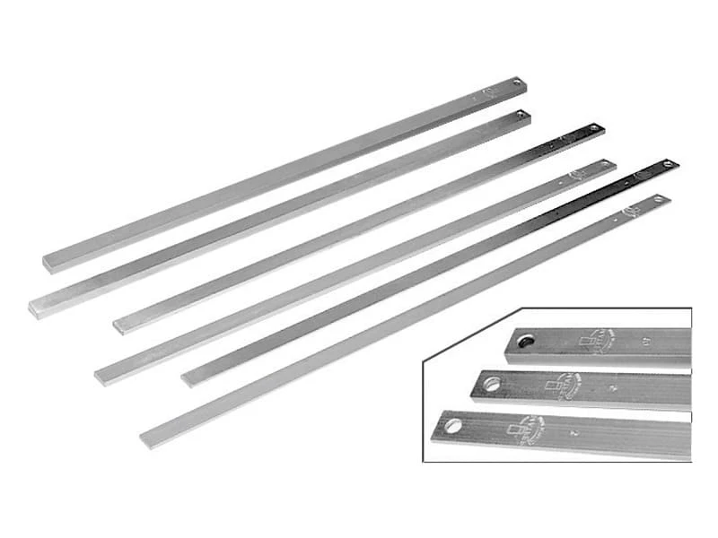 Jeu de 6 règles en aluminium plein poli, pour étaler le fondant, la ganache, le caramel, etc… en plaques d’épaisseur constante.