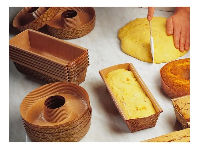Moule à cake en papier agréé contact alimentaire direct.