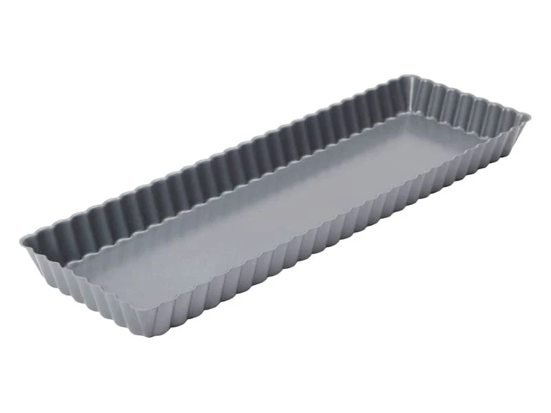 Revêtement antiadhérent sans PFOA pour ce moule à tarte rectangulaire à fond amovible..
