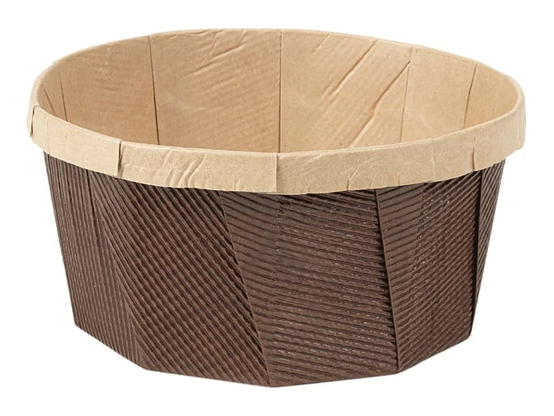 Moule Gardénia rond en papier de grammage élevé, ondulé, pure cellulose, intérieur siliconé, extérieur marron.