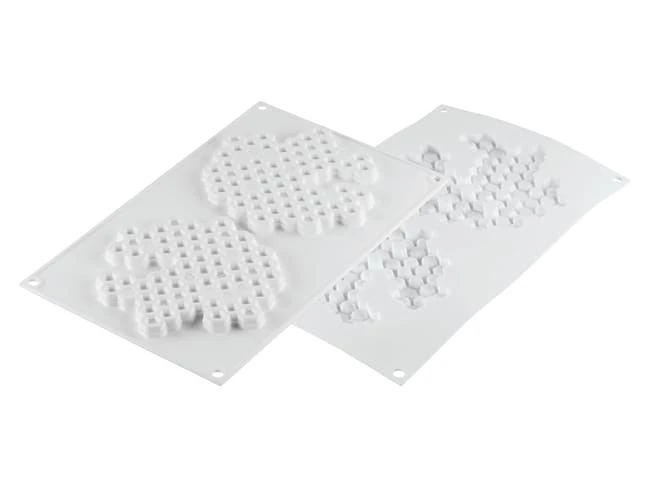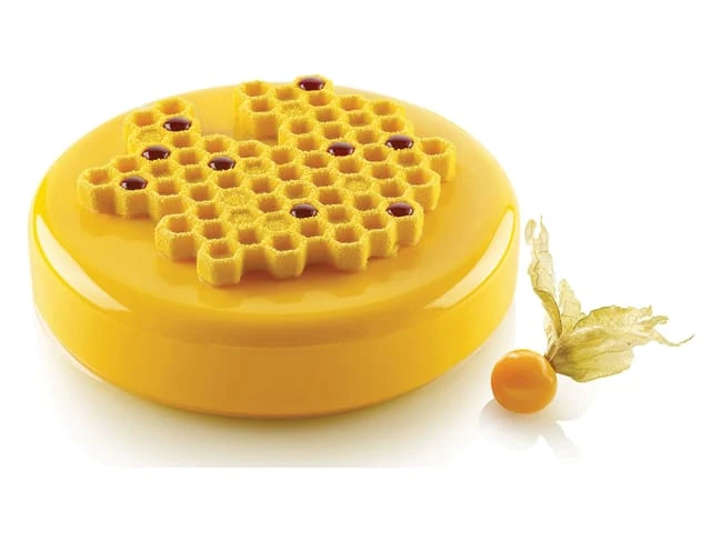 Ce moule en silicone vous permettra de réaliser des décors de forme “nid d’abeille”, en chocolat sans congélation, ou en mousse, crème, confit de fruit, ganache montée… avec congélation.