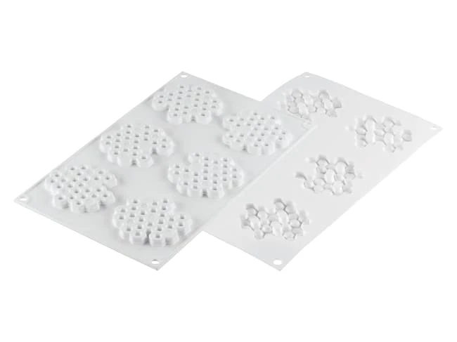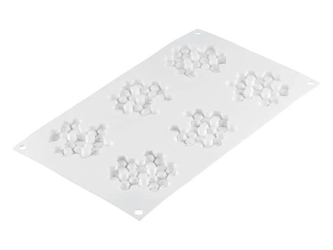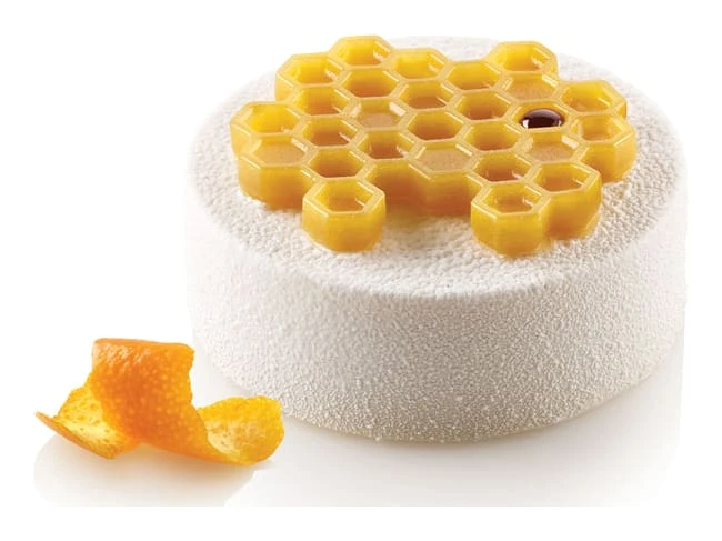 Ce moule en silicone vous permettra de réaliser des décors de forme “nid d’abeille”, en chocolat sans congélation, ou en mousse, crème, confit de fruit, ganache montée… avec congélation.