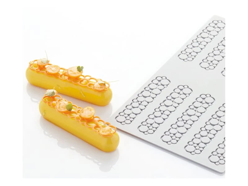Ce moule propose une finition décorative sophistiquée, grâce à lui réaliser des opalines, dentelles, des décors géométrique ou autour des bulles.