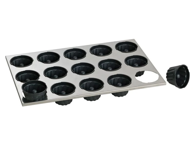 Moules kouglofs Ø 9,5 cm en Exoglass® montés sur une plaque spéciale en acier inoxydable 60 x 40 cm.