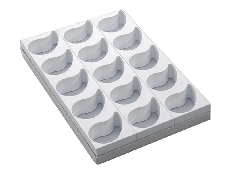 La plaque multimoules est composée de 3 bandes de 5 moules.